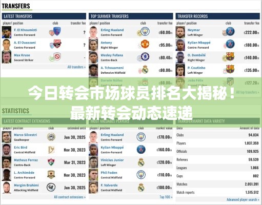 这些球员都是当今足坛的佼佼者,他们的表现吸引了全球的关注,他们的转会动态也牵动着全球球迷的心,今日转会球员排名最新情况显示,这些球员在转会市场上备受瞩目,成为各大俱乐部竞相追逐的焦点,他们的未来去向将决定足球赛季的走向,让我们拭目以待!