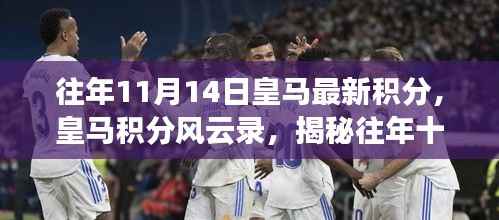 皇家马德里的积分风云录不仅仅是一场比赛的胜利或失利,更是足球历史中一段段传奇故事的见证,往日十一月十四日的积分累积,是皇马辉煌历程中的一部分,也是足球时代变迁的缩影,通过回顾这些故事,我们不仅能够感受到足球的魅力,也能体会到皇家马德里这支球队所承载的荣誉与梦想。